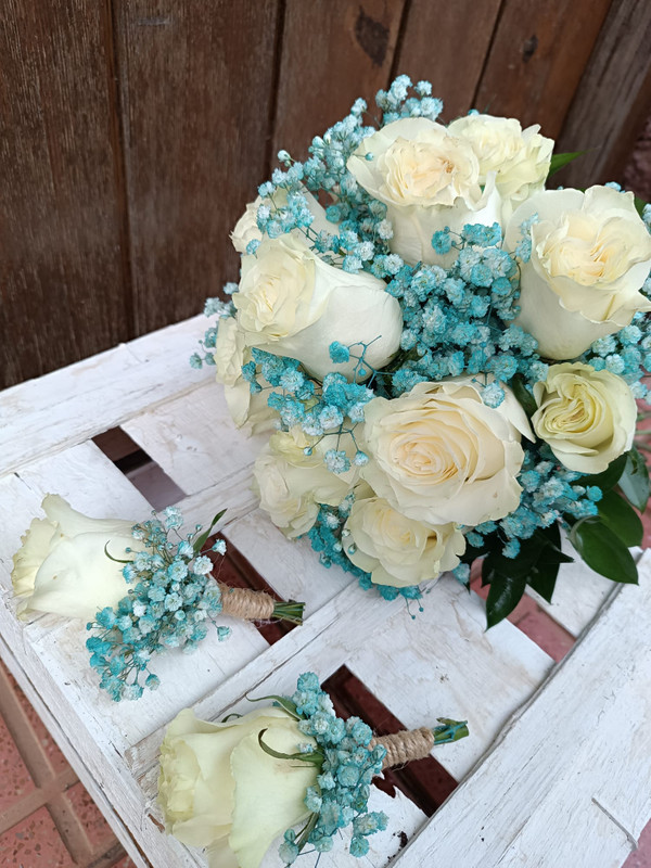 Ramo de novia de flor Natural, rosas vendella y panículata celeste. Cualquier otro tipo de ramo consultar precio. .